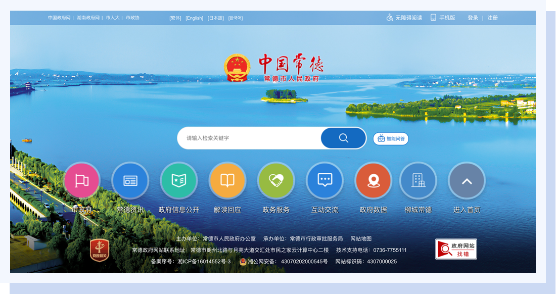 常德政府門戶網(wǎng)站是由常德市人民政府主辦,常德市人民政府辦公室、常德市行政審批服務(wù)局承辦,是常德市委、市政府對外發(fā)布政務(wù)信息、對相關(guān)政策文件進(jìn)行權(quán)威解讀、實(shí)現(xiàn)政民互動(dòng)、提供網(wǎng)上辦事服務(wù)的平臺,也是宣傳展示常德形象的窗口。