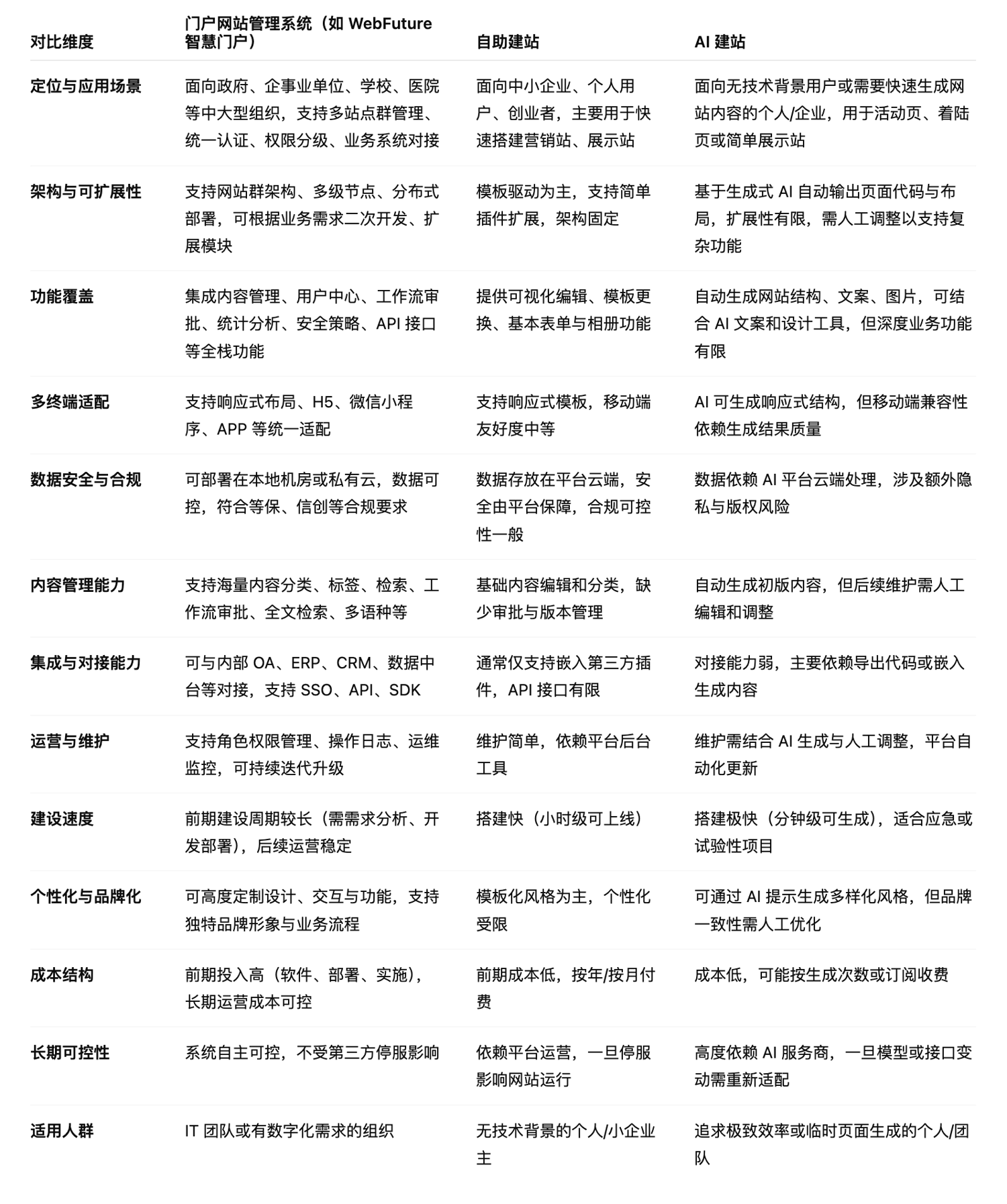 門戶網(wǎng)站管理系統(tǒng)、自助建站與 AI 建站的全面對比與應用解讀