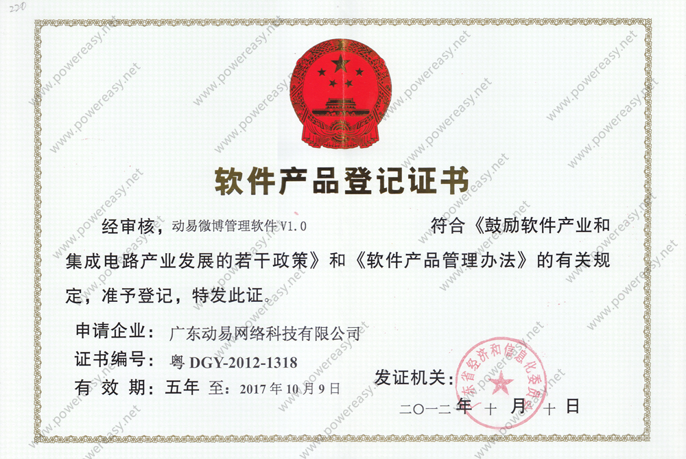 軟件產(chǎn)品登記-動(dòng)易微博管理軟件V1.0