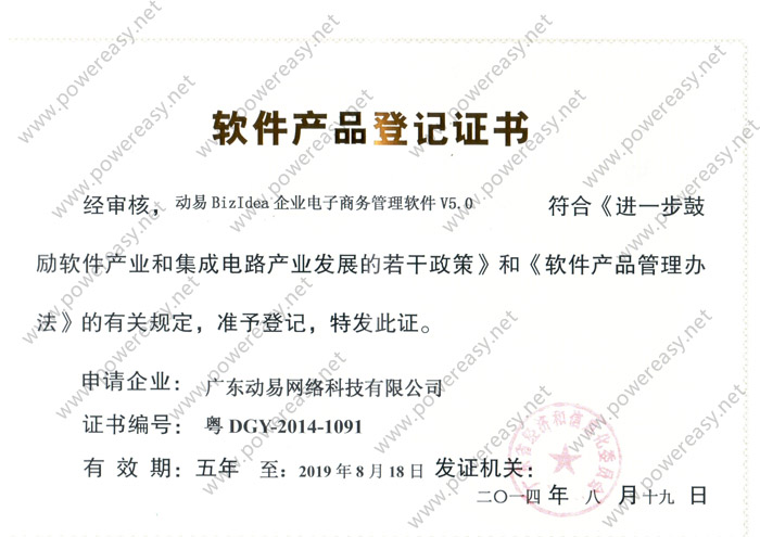 軟件產(chǎn)品登記—?jiǎng)右譈izIdea企業(yè)電子商務(wù)管理軟件V5.0