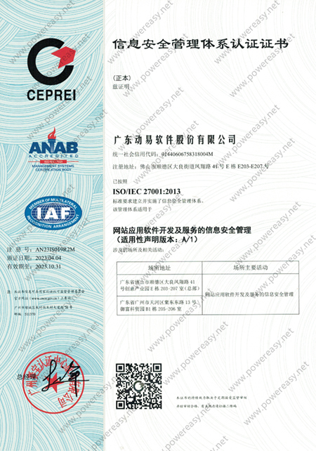 ISO 27001 信息安全管理體系證書(shū)