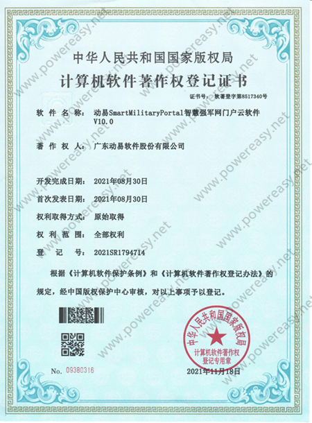 軟件著作權(quán)-動(dòng)易SmartMilitaryPortal智慧強(qiáng)軍網(wǎng)門(mén)戶云軟件V10.0