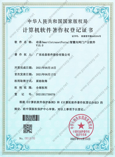 軟件著作權(quán)-動(dòng)易SmartIntranetPortal智慧內(nèi)網(wǎng)門(mén)戶云軟件V10.0