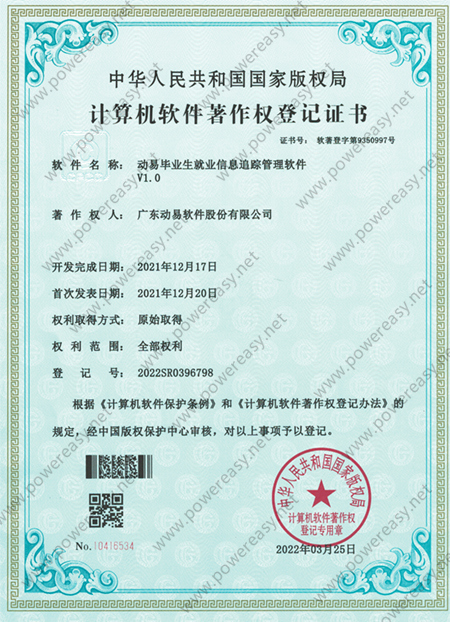 軟件著作權(quán)-動(dòng)易畢業(yè)生就業(yè)信息追蹤管理軟件V1.0