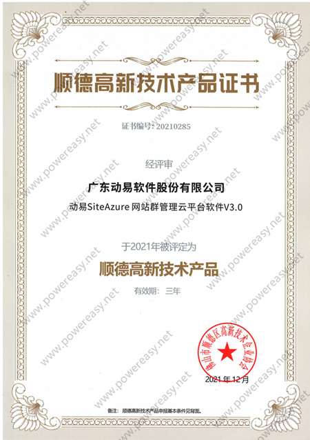 2021高新技術(shù)產(chǎn)品證書(shū)—?jiǎng)右譙iteAzure 網(wǎng)站群管理云平臺(tái)軟件V3.0