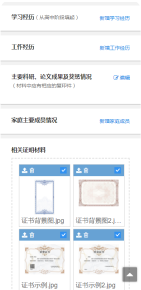 報(bào)名前必須要注冊(cè)用戶并登錄。報(bào)名表填寫采用仿真界面,即與紙質(zhì)報(bào)名表的樣式接近。支持上傳相關(guān)證明材料(支持圖片、視頻、PDF、壓縮文件等格式)。