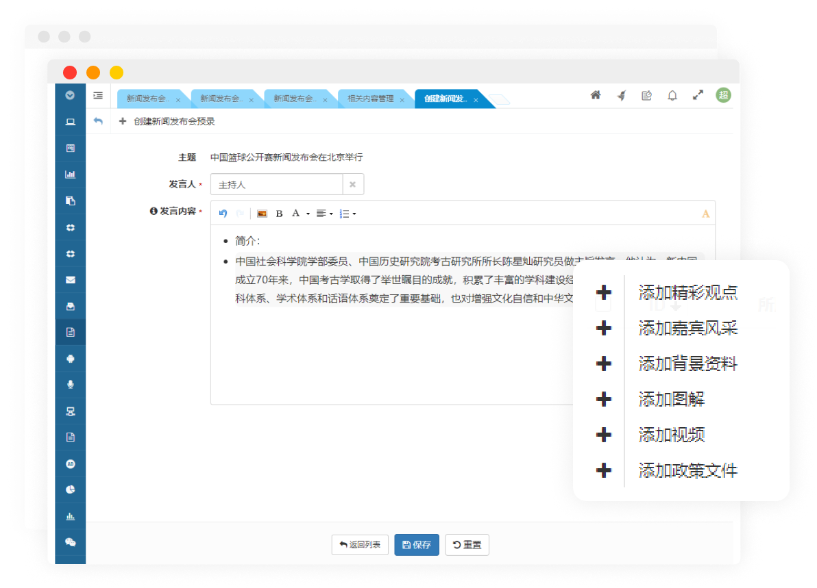 新聞發(fā)布會(huì)系統(tǒng)專為網(wǎng)站群平臺(tái)設(shè)計(jì),旨在提供一個(gè)互動(dòng)交流的新聞發(fā)布會(huì)欄目。