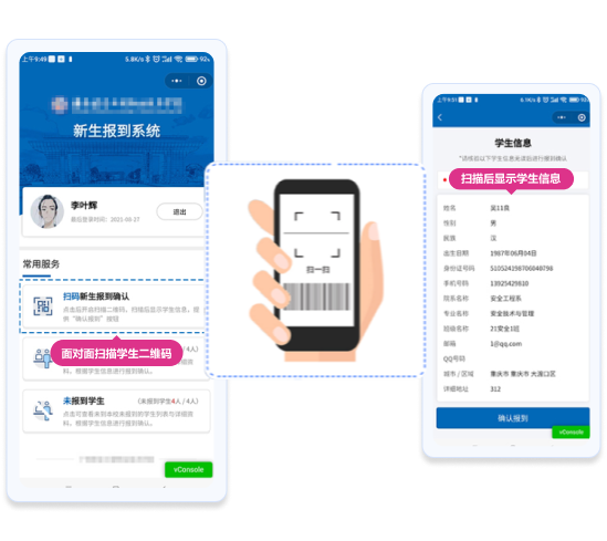 班主任可以通過掃描學(xué)生的報(bào)到二維碼來查看學(xué)生信息,進(jìn)行驗(yàn)證和確認(rèn)報(bào)到。