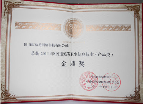 2011年10月31~11月3日,“第五屆中國國際電子病歷? 醫(yī)藥物聯(lián)網(wǎng)?健康云計算博覽會”在深圳隆重舉辦,大會評選出了一年一度的中國醫(yī)藥衛(wèi)生信息“金鼎獎”,動易軟件榮獲“2011年中國醫(yī)藥衛(wèi)生信息化首選品牌”獎和“2011年中國醫(yī)藥衛(wèi)生信息技術(shù)(產(chǎn)品類)金鼎獎”。