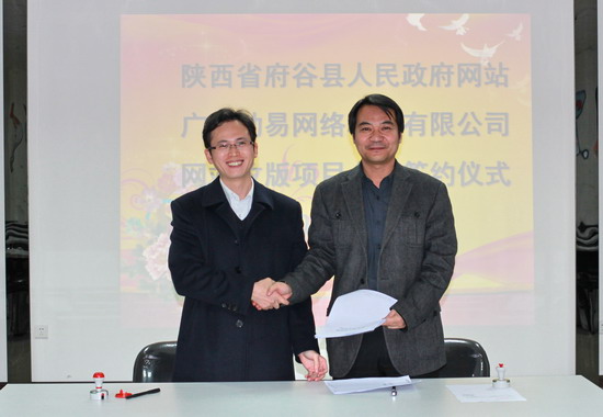 (動易軟件公司董事長、總裁粟維勝先生和府谷縣人民政府網(wǎng)站負責人李鵬簽訂合作協(xié)議)