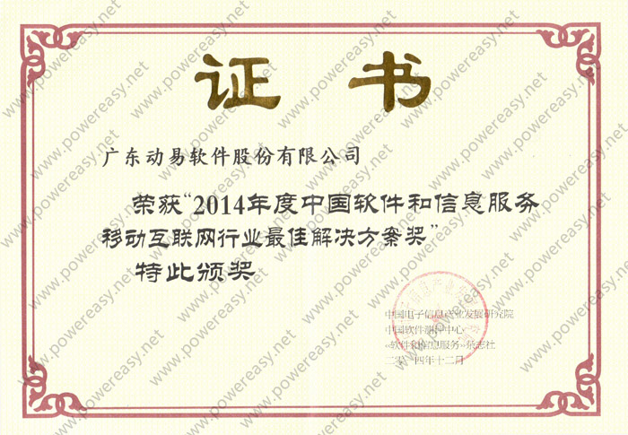 移動互聯(lián)網(wǎng)行業(yè)最佳解決方案獎