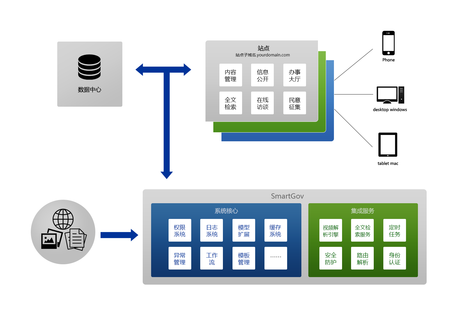 全新架構(gòu)的動(dòng)易SiteAzure響應(yīng)并完全符合國辦《國務(wù)院辦公廳關(guān)于加強(qiáng)政府網(wǎng)站信息內(nèi)容建設(shè)的意見》文件精神,對網(wǎng)站集群化與集約化進(jìn)行了完美的詮釋,是構(gòu)建新一代政府門戶網(wǎng)站集群的最佳解決方案。