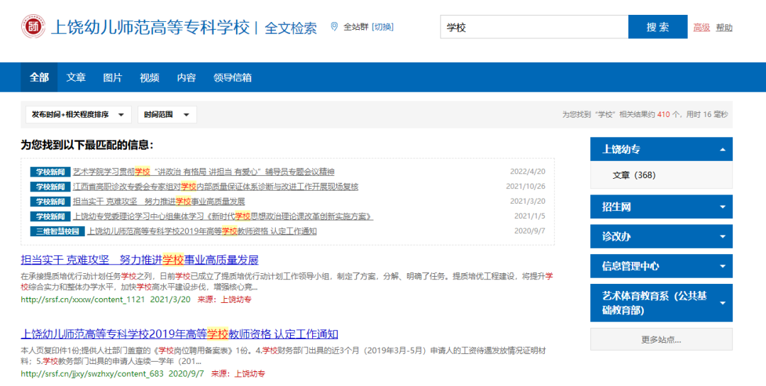 智能的全文檢索技術,可支持檢索網(wǎng)站群全站數(shù)據(jù),也支持跨站點或指定站點的檢索。可為網(wǎng)站解決海量數(shù)據(jù)下的站內(nèi)信息和文檔檢索應用,向師生、社會人士提供高效、準確、個性化的站內(nèi)資訊搜索體驗,大大提升用戶在網(wǎng)站的檢索和查詢體驗。