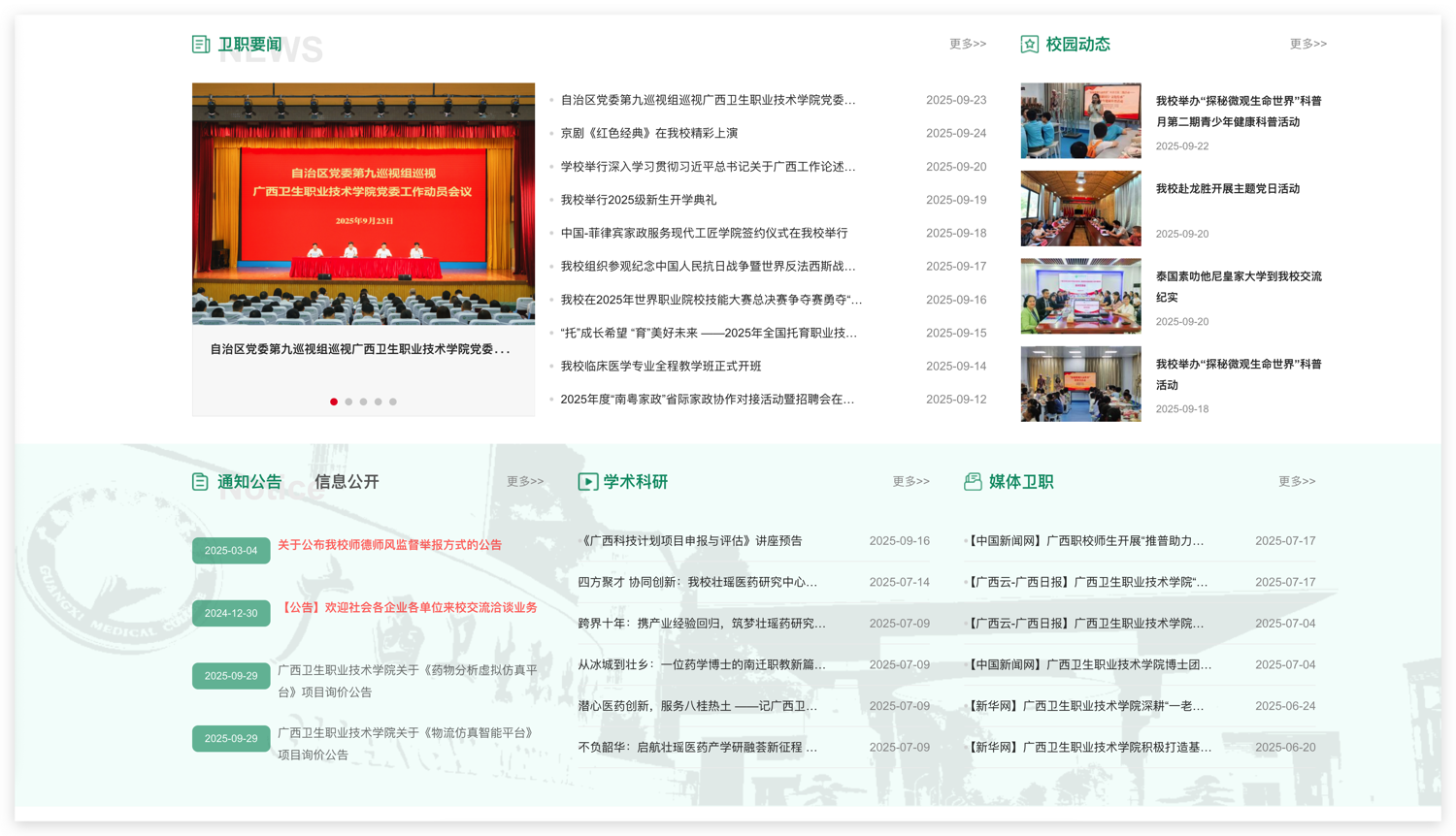 廣西衛(wèi)生職業(yè)技術(shù)學院網(wǎng)站群建設(shè)案例:打造精美、集約化、安全化、智慧化校園門戶