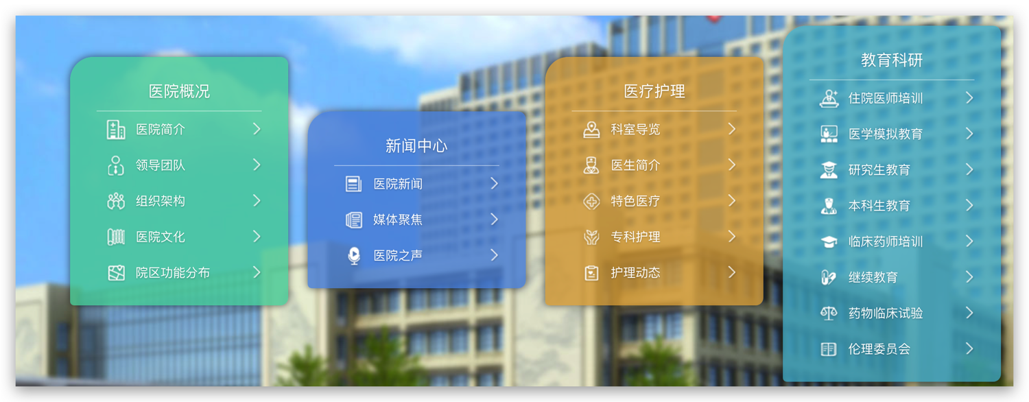 • 社會(huì)入口主要展示醫(yī)院概況、科研教學(xué)、動(dòng)態(tài)新聞等,讓公眾快速了解醫(yī)院品牌與實(shí)力。