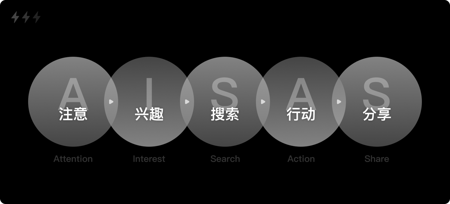 當互聯(lián)網(wǎng)作為全新的媒介進入我們的生活,消費者行為模式開始重新解構。2005年,日本電通廣告集團提出了全新模型:AISAS。模型中添加了兩個來自互聯(lián)網(wǎng)的行為,搜索和分享,這也正是互聯(lián)網(wǎng)造成消費者行為改變的重要原因。