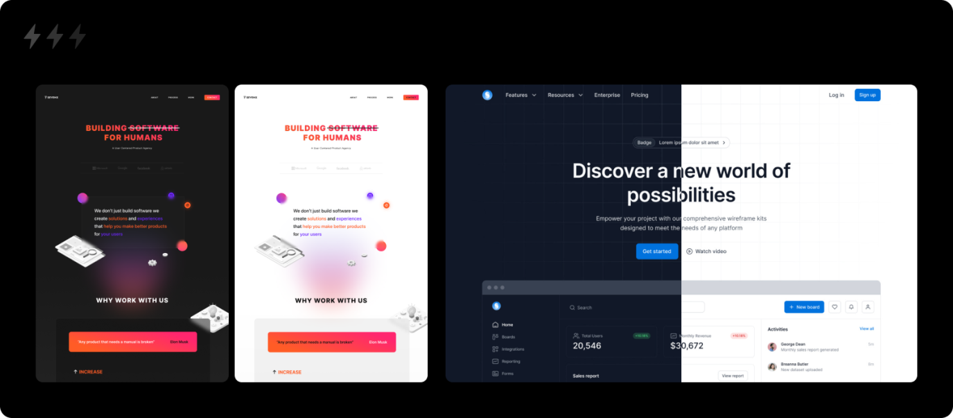 1. 深淺主題:首先確定深色主題還是淺色主題。淺色主題的文字對比度較高,適合需要呈現(xiàn)大量內(nèi)容的的網(wǎng)站。淺色的風格適配性也很強。深色主題則能更好地凸顯色彩鮮艷的內(nèi)容或圖形,傳遞出時尚、現(xiàn)代、前沿的感覺。主題色調(diào)的選擇并非二選一,有時深淺交錯的呈現(xiàn)形式能夠結合兩者的優(yōu)點,視覺體驗更佳。