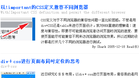 在Opera瀏覽器中瀏覽的效果中,標(biāo)題頂部缺少間距倒也說(shuō)得過(guò)去,至少?zèng)]影響頁(yè)面效果;Mozilla Firefox中瀏覽的效果中標(biāo)題、副標(biāo)題都擠得亂套了,說(shuō)明還有定義狐貍(Firefox)中要嚴(yán)格定義,耐心查查吧。