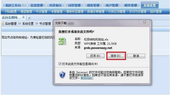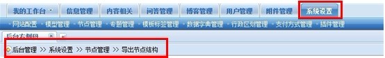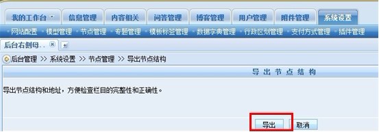 首先進(jìn)入系統(tǒng)后臺(tái)“系統(tǒng)設(shè)置”界面,在“節(jié)點(diǎn)管理”功能欄中點(diǎn)擊“導(dǎo)出節(jié)點(diǎn)結(jié)構(gòu)”。