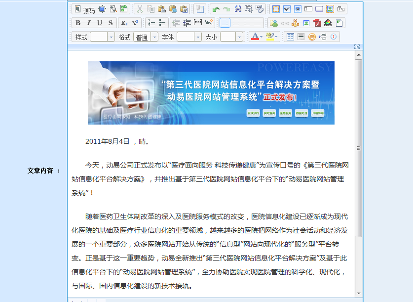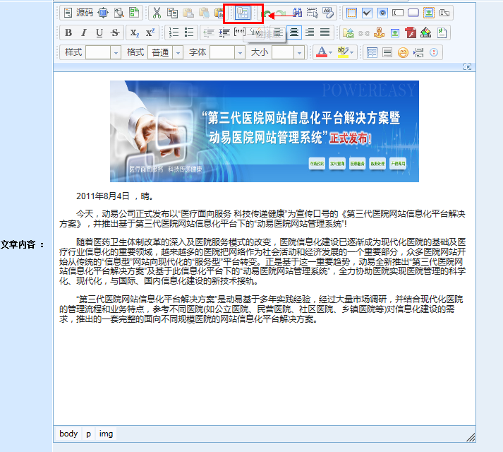 在動(dòng)易后臺(tái),進(jìn)入“添加文章頁(yè)面”,在編輯器中直接粘貼文章: