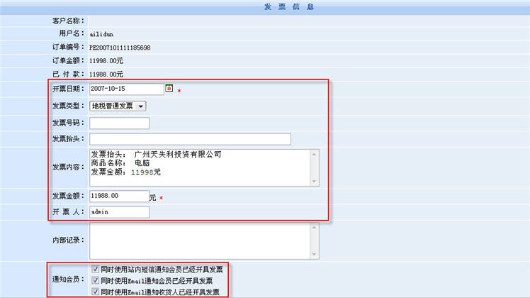 在動易eShop2007里,為顧客開發(fā)票是通過這個步驟進(jìn)行的:后臺管理——商店管理——訂單處理——訂單信息——開發(fā)票。