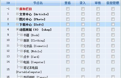 政府、事業(yè)單位、企業(yè)等網(wǎng)站的頻道、專題、欄目都是由節(jié)點來組成,“節(jié)點類權限”就是對這些頻道、欄目、專題的訪問、錄入、管理等操作的管理權限。運用動易SiteFactory? 可以對網(wǎng)站所有節(jié)點進行管理權限設置,并可以細化到每個節(jié)點的具體操作。如下圖為動易SiteFactory? 默認節(jié)點的權限設置: