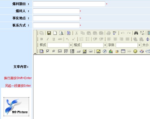 后臺(tái)管理員處理信息:爆料人、事發(fā)地點(diǎn)、聯(lián)系方式、是否處理、采納說明、稿費(fèi)金額、爆料內(nèi)容。