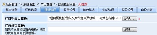 首先,設(shè)置“大自然”節(jié)點(diǎn)的模板選項(xiàng),如下圖所示: