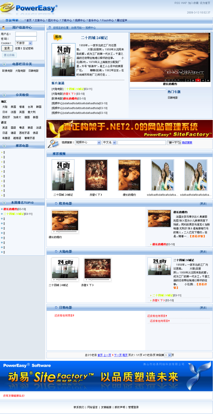 利用動(dòng)易SiteFactory 2.5 預(yù)置的視頻模型,站長(zhǎng)可以擴(kuò)展出多樣化的網(wǎng)站應(yīng)用,如在自己網(wǎng)站上輕松搭建起在線影視播放頻道,以吸引更多的瀏覽用戶,為網(wǎng)站聚集更多人氣;還可供教育\學(xué)校網(wǎng)站建設(shè)起在線教程點(diǎn)播網(wǎng)站(如動(dòng)易官網(wǎng)的動(dòng)易起航教學(xué)教程點(diǎn)播站點(diǎn))。此外,還可以結(jié)合動(dòng)易內(nèi)容管理中的收費(fèi)瀏覽功能來(lái)構(gòu)建起商業(yè)性質(zhì)的收費(fèi)網(wǎng)站,以更好地實(shí)現(xiàn)網(wǎng)站運(yùn)營(yíng)盈利化。