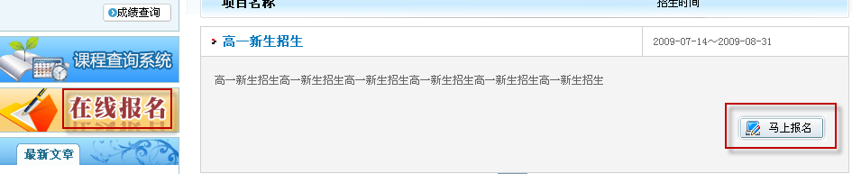 而學(xué)生可以在學(xué)校網(wǎng)站前臺(tái)在線提交報(bào)名信息: