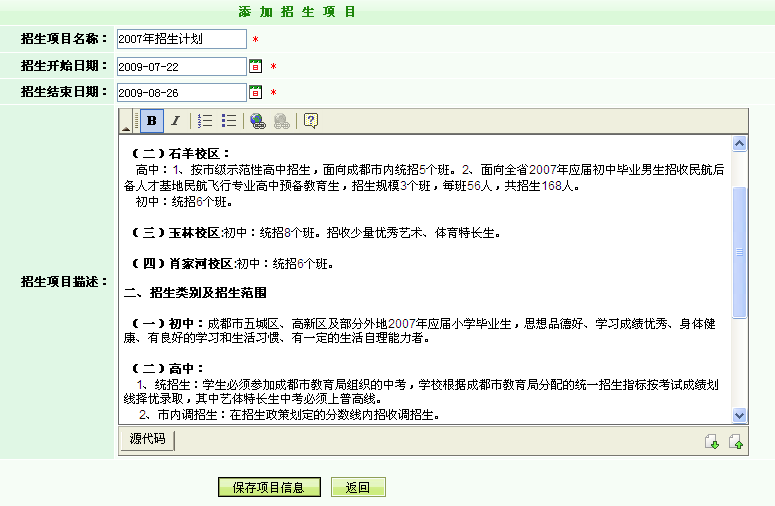 學(xué)校管理員可以在后臺(tái)方便添加學(xué)校的各項(xiàng)招生信息:
