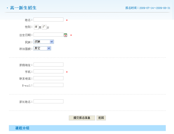 利用招生管理功能,學(xué)??梢詫?shí)現(xiàn)新生入學(xué)招生、校內(nèi)各類興趣班\培訓(xùn)班招生等等,尤其是對(duì)于如今社會(huì)上琳瑯眾多的各類培訓(xùn)機(jī)構(gòu)和學(xué)校來說,這個(gè)功能便尤為實(shí)用。學(xué)生可以在學(xué)校網(wǎng)站上瀏覽學(xué)校開設(shè)的各種課程,選定后便可直接在線報(bào)名,而不用親自跑到學(xué)校去報(bào)名,非常方便;而學(xué)校在網(wǎng)站后臺(tái)也可以對(duì)各種不同培訓(xùn)課程的學(xué)生報(bào)名情況進(jìn)行分別管理,讓工作人員的工作變得簡(jiǎn)單而高效,而且還大大節(jié)省了人力成本。