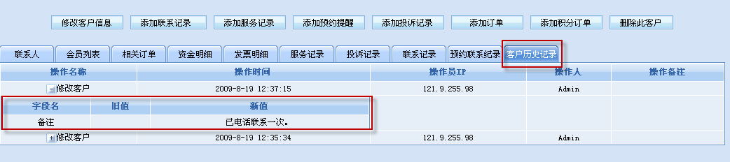 客戶信息修改歷史記錄