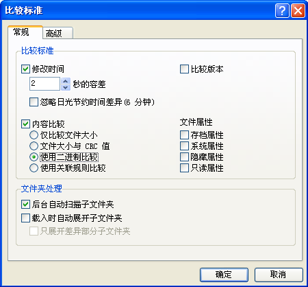 點(diǎn)擊確定后,程序進(jìn)入主界面。我們還需要設(shè)置比較標(biāo)準(zhǔn):使用二進(jìn)制比較。二進(jìn)制比較是為了比較文件的實(shí)際內(nèi)容,如果使用普通比較的話,如果文件時間不同,內(nèi)容相同,也會被視為差異文件。